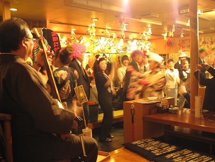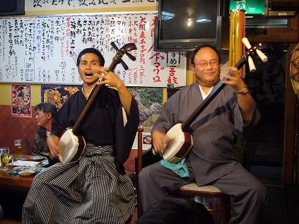 此方のお店は三味線や太鼓・ねぶた囃子を従業員の方が演奏してくださったり、お客さんも太鼓を叩いたりして参加する事も可能だそうです。