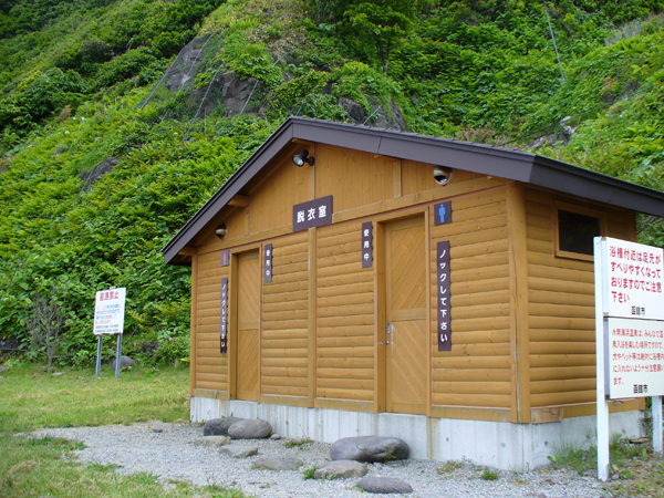 一応更衣室もあるので、そちらで服を脱いで温泉に行くことが出来るのですが、それなりの距離がある事と普通の観光客の方も来られるようなので、水着着用で入った方がいいかもしれませんね。