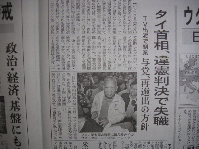 サマック首相が“アルバイト”してたので失職しました。(判決まで2週間!早ッ!16000円貰ったから有罪って!?今さら?サマック氏も「はいはいやめますやめますよ~」ってバイトに関して争わず。どうせ再選するしね~って)